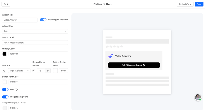 The Native Button Display allows you to embed AVA as a CTA button on your website.