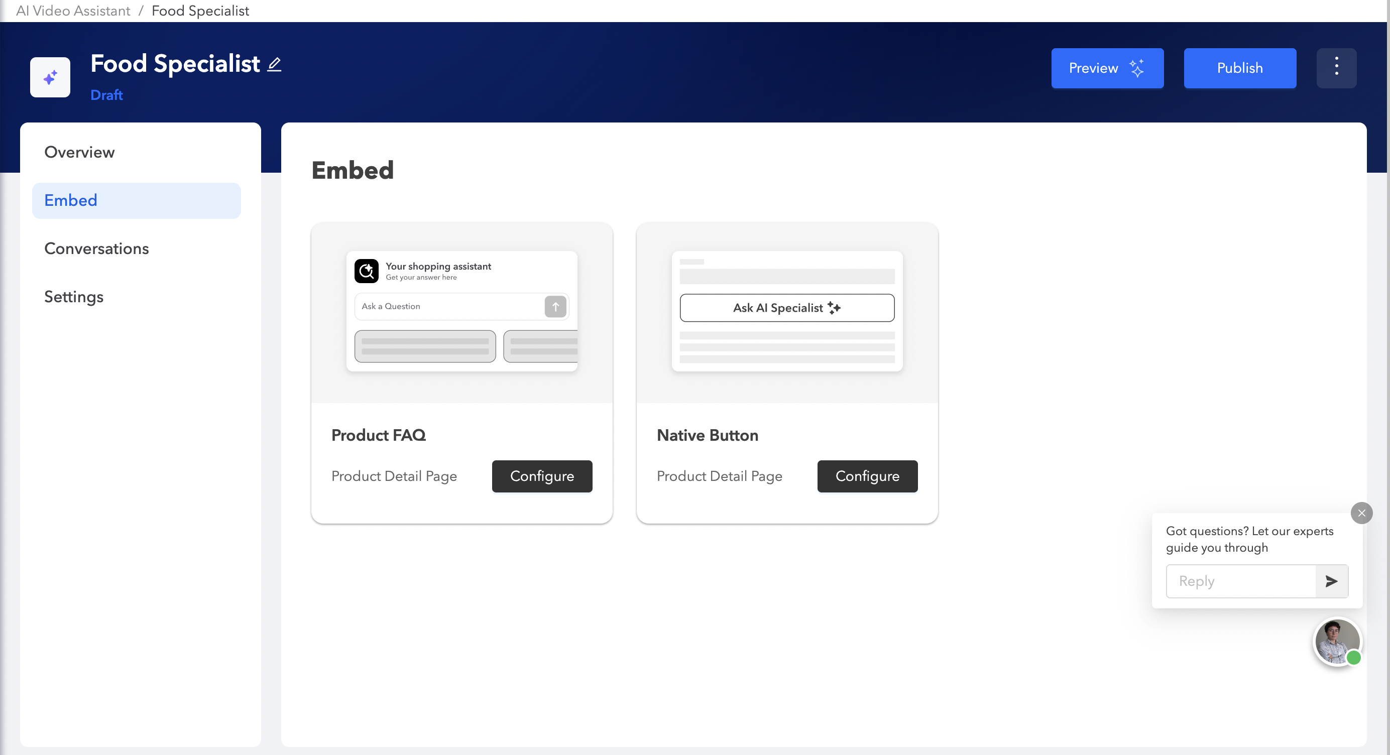 Before Publishing, we recommend testing AVA in the Preview option to see your results.