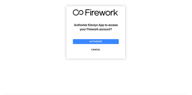 - KlaviyoがFireworkアカウントにアクセスできるよう承認(Authorize)をクリックします。