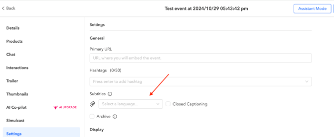 - Once your event is live, viewers can click the CC icon in the top-right corner of the player to enable subtitles.