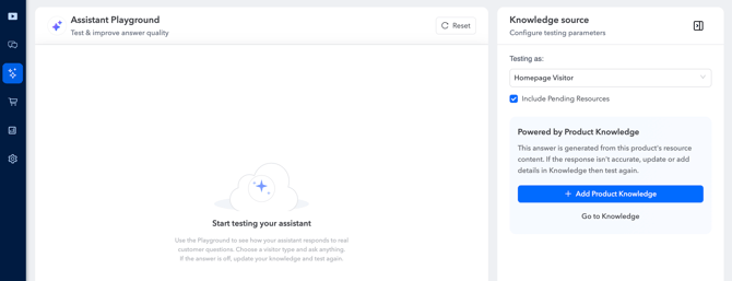 - Update the knowledge base directly by clicking + Add Product Knowledge or go to Knowledge.
