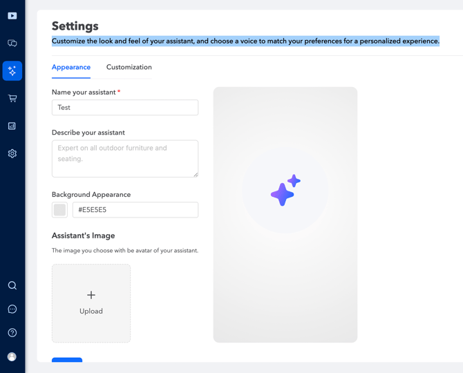 - Upload a custom image, replacing the default avatar to give your assistant a uniquely personalized appearance.