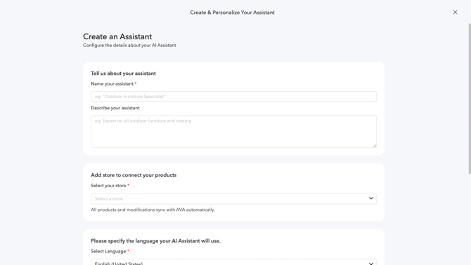 - Choose the language your AI Assistant will use to interact with shoppers.