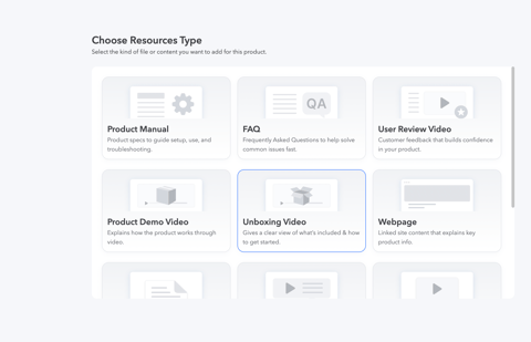 - Click on the product you want to add and then click on + Add Resources to start adding resources to your products.