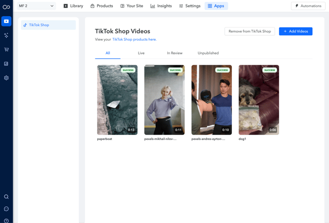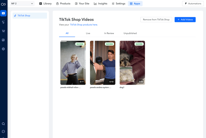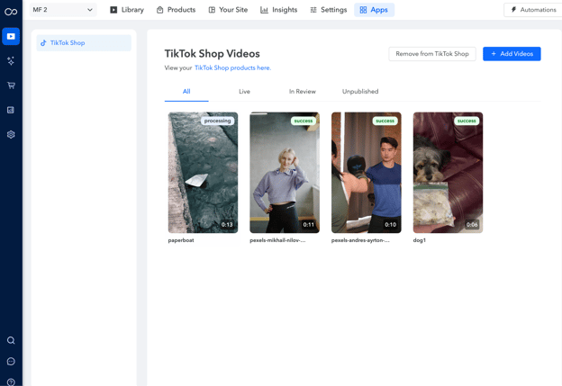 6. Now that you’ve integrated TikTok Shop, lets try publishing videos. Click on "Add Videos"