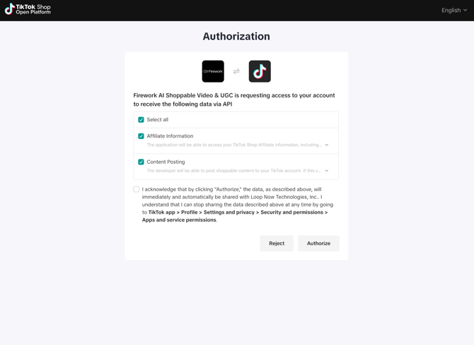 5. Click “Authorize” to sync TikTok creator account.